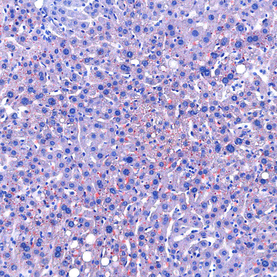 油红O对脂滴的染色机制一般认为是物理学上的溶液作用或吸附作用,借溶液作用使脂质染色,即油红O先溶于60%异丙醇中,然后切片浸入油红O染液中时,油红O在组织脂质的溶解度较60%异丙醇中的溶解度高,所以在染色时油红O从60%异丙醇中转移入脂质中使脂滴显示红色。